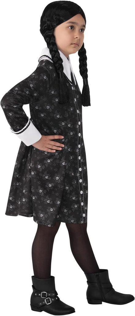 Every child has a little quirk to them, and Wednesday Addams encourages you to embrace your weird side in our girls Wednesday Addams Dress Costume. This dress is also notably inspired by the 90's portrayal of Wednesday in the Addams Family movie by Christina Ricci. Pay homage to the classic Addams family as the radical fashionista.