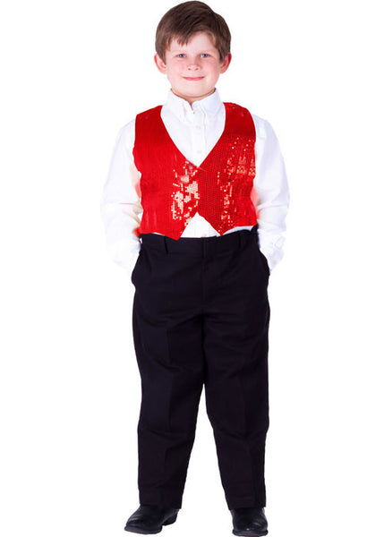 - This fully lined sequin vest closes with a hook and eye and features a bucket strap in the back for an adjustable fit.