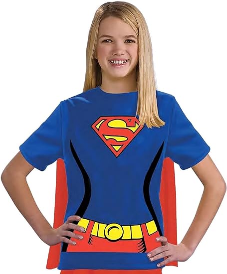 Unleash your superhero powers with this Girls DC Comics Supergirl Costume. Easily pair with the Superman costume for the ultimate crime-fighting duo, or group with other DC Comics characters for an epic superhero team! Your little girl can suit up and tap into that heroic passion with this supergirl costume top.
