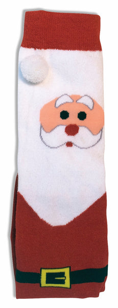 Calcetines navideños de Papá Noel con dibujos animados y 3 pequeños botones de pompones negros. Talla única. Muestra tu espíritu navideño este año con estos divertidos y festivos calcetines de Papá Noel. Perfectos para usar en esta fiesta o mañana de Navidad. Un lindo complemento para cualquier look navideño... ¡también te mantendrán abrigado!