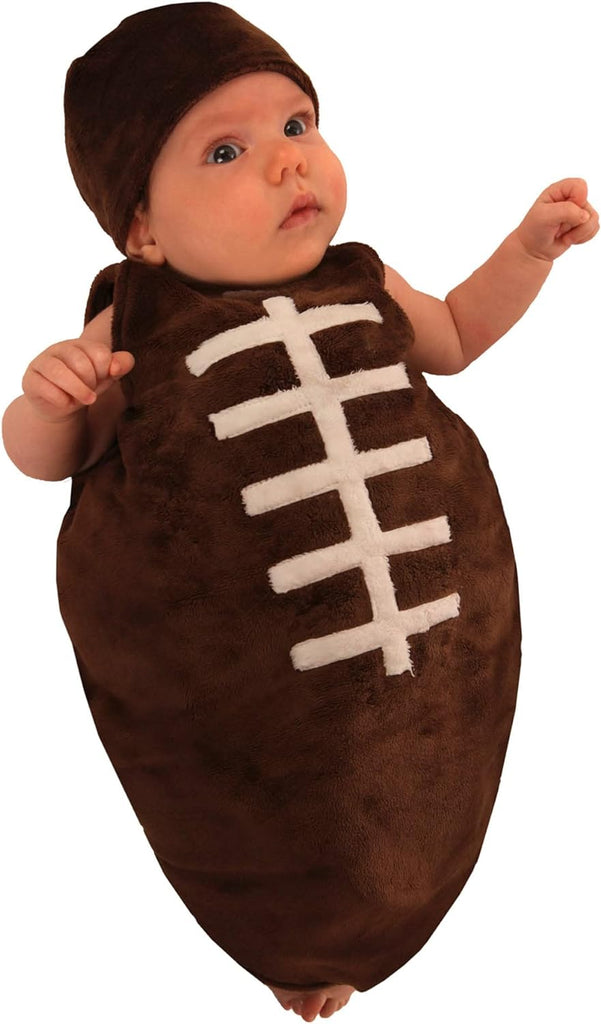 - Incluye banderines marrones con forma de balón de fútbol, sin mangas y gorra marrón a juego.