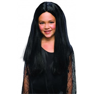 Peluca de Morticia Addams para niños: cabello negro largo y liso