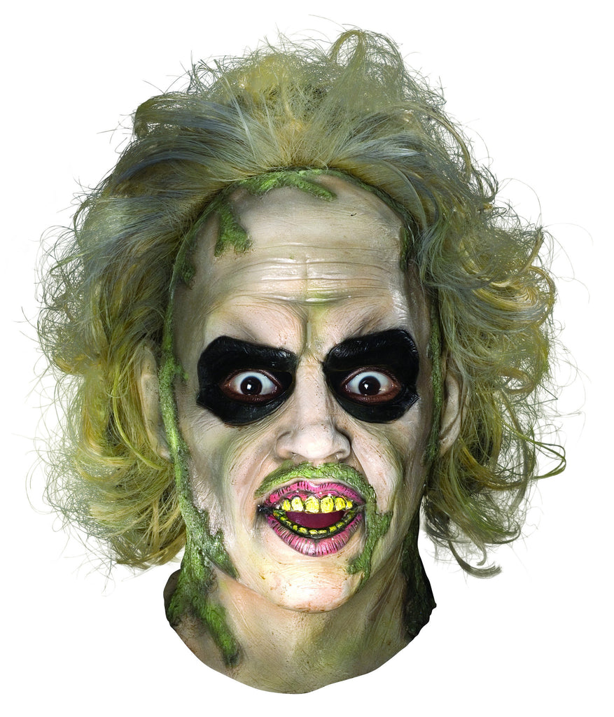 - Masque Beetlejuice de luxe en latex avec cheveux attachés.