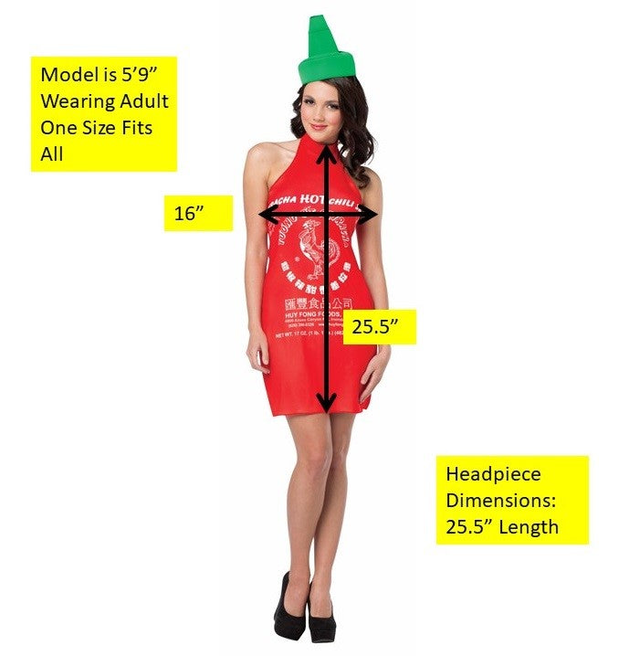 Transformez-vous en condiment épicé préféré de tous avec ce costume de robe et de bandeau pour femme à la sauce Sriracha ! Le bandeau ajoute une touche amusante tandis que le motif à la sauce piquante ajoute une touche délicieusement audacieuse. Cette robe s'associera parfaitement à d'autres costumes de condiments pour un costume de groupe amusant et unique. Préparez-vous à faire monter la température avec ce costume accrocheur.