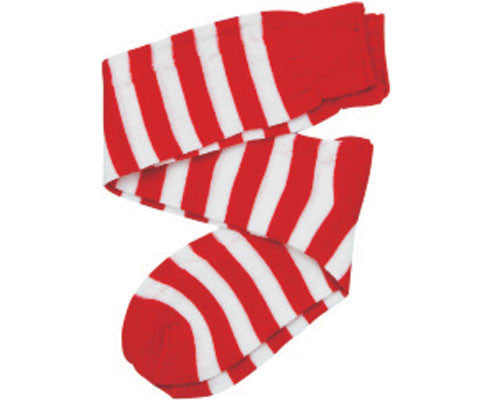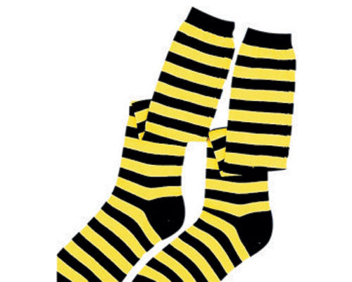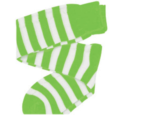 One pair of striped socks; available in black and yellow, green and white or red and white.