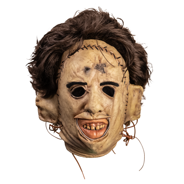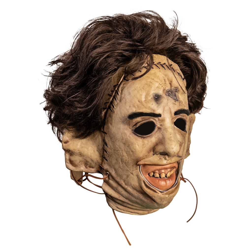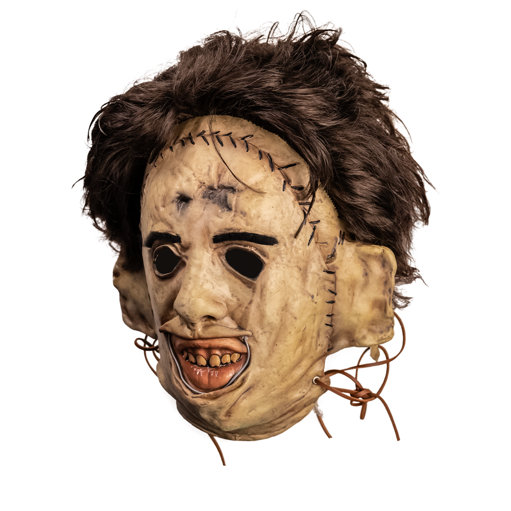 - Features the 1974 Horror Classic Leatherface mask with stitches and hair