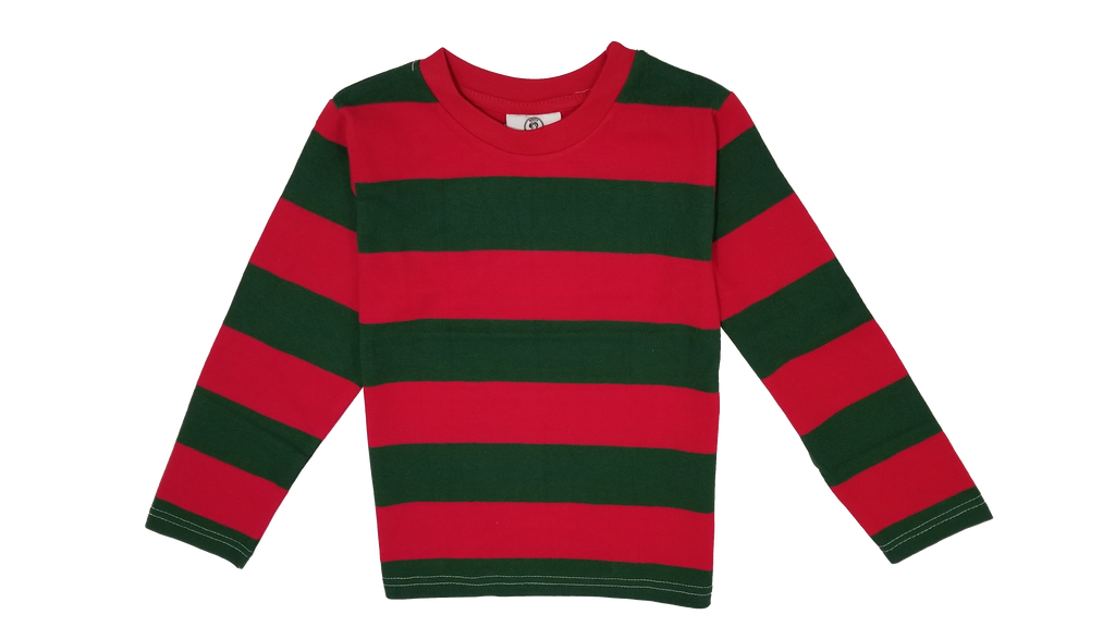 Create a classic look on a budget this Halloween with this Red and Green Striped Costume T-Shirt and, even better, own a soft, warm t-shirt that can be used beyond the Halloween season! Unlike most Halloween costumes, this Red and Green Striped Costume T-Shirt was designed to be worn year-round. This high-quality t-shirt doesn't have to be worn for Halloween or cosplay events only. Pair this t-shirt with your child's existing pants for a warm, inexpensive DIY Freddy Krueger or Elf Costumes, and Holiday Cheer look!